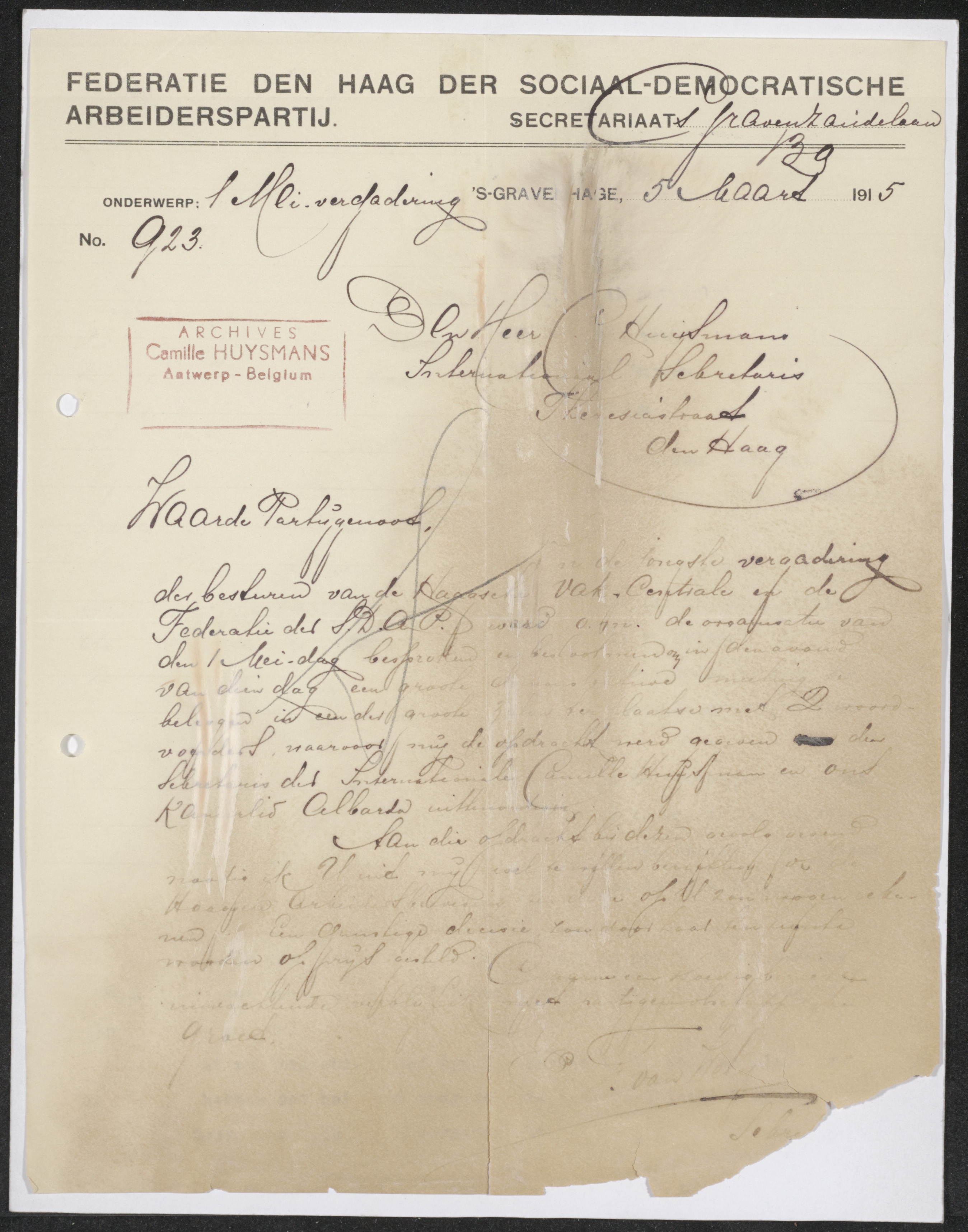 Als socialistisch politicus drukte Camille Huysmans zijn stempel op de Belgische binnenlandse politiek en speelde hij internationaal eveneens een prominente rol. Het omvangrijke archief dat hij naliet bevat dan ook een schat aan bronnenmateriaal over de meest diverse en uiteenlopende onderwerpen.