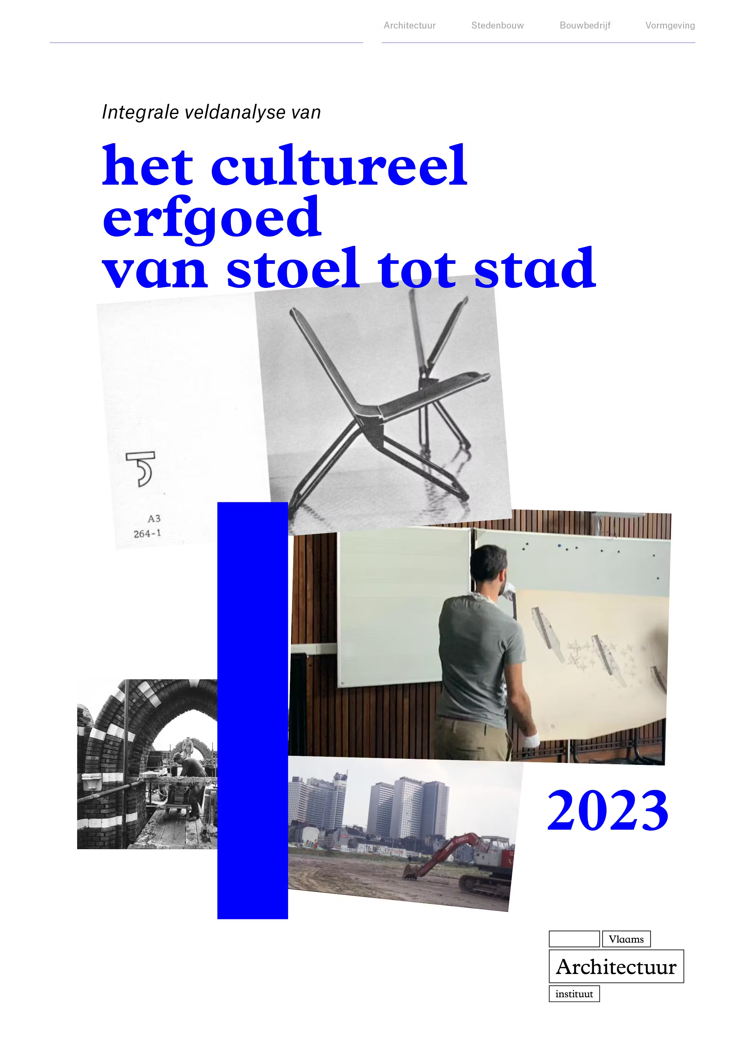 De veldanalyse werpt een licht op het erfgoed van onze ontworpen omgeving. Het rapport geeft een overzicht van de toestand van dit erfgoed, brengt hiaten en huidige trends in kaart en wijst op kansen en noden die errond ontstaan. Ze focust op de domeinen architectuur, stedenbouw, bouwbedrijf en vormgeving. Het is opgebouwd rond de vragen: Wie produceert dit erfgoed? Waar vind je het? Welke uitdagingen en opportuniteiten vormen zich rond dit erfgoed? Hoe ziet de toekomst eruit?