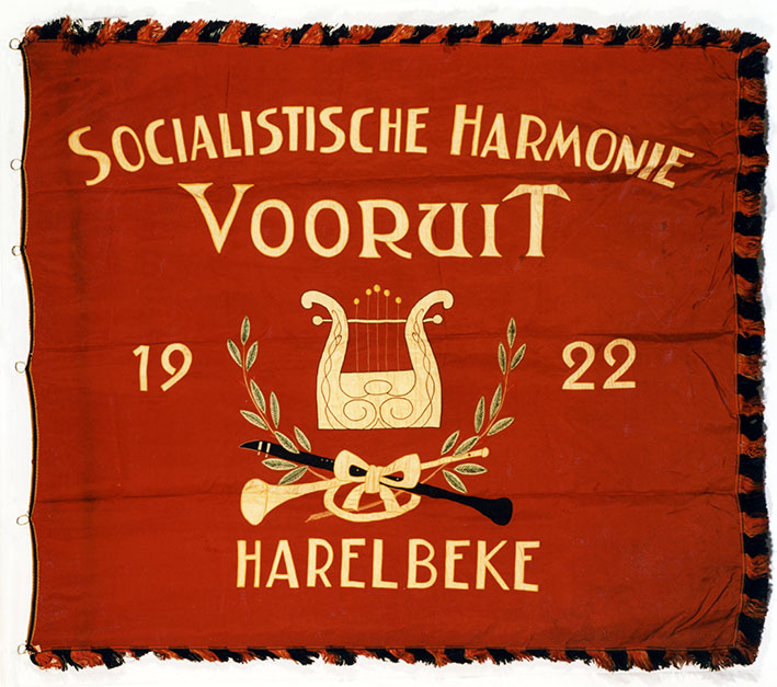 In 2022 bestaat Koninklijk Harmonieorkest Vooruit Harelbeke een eeuw. Het orkest viert dit jubileum met een boek en een tentoonstelling. Amsab-ISG gaf een vlag in bruikleen.