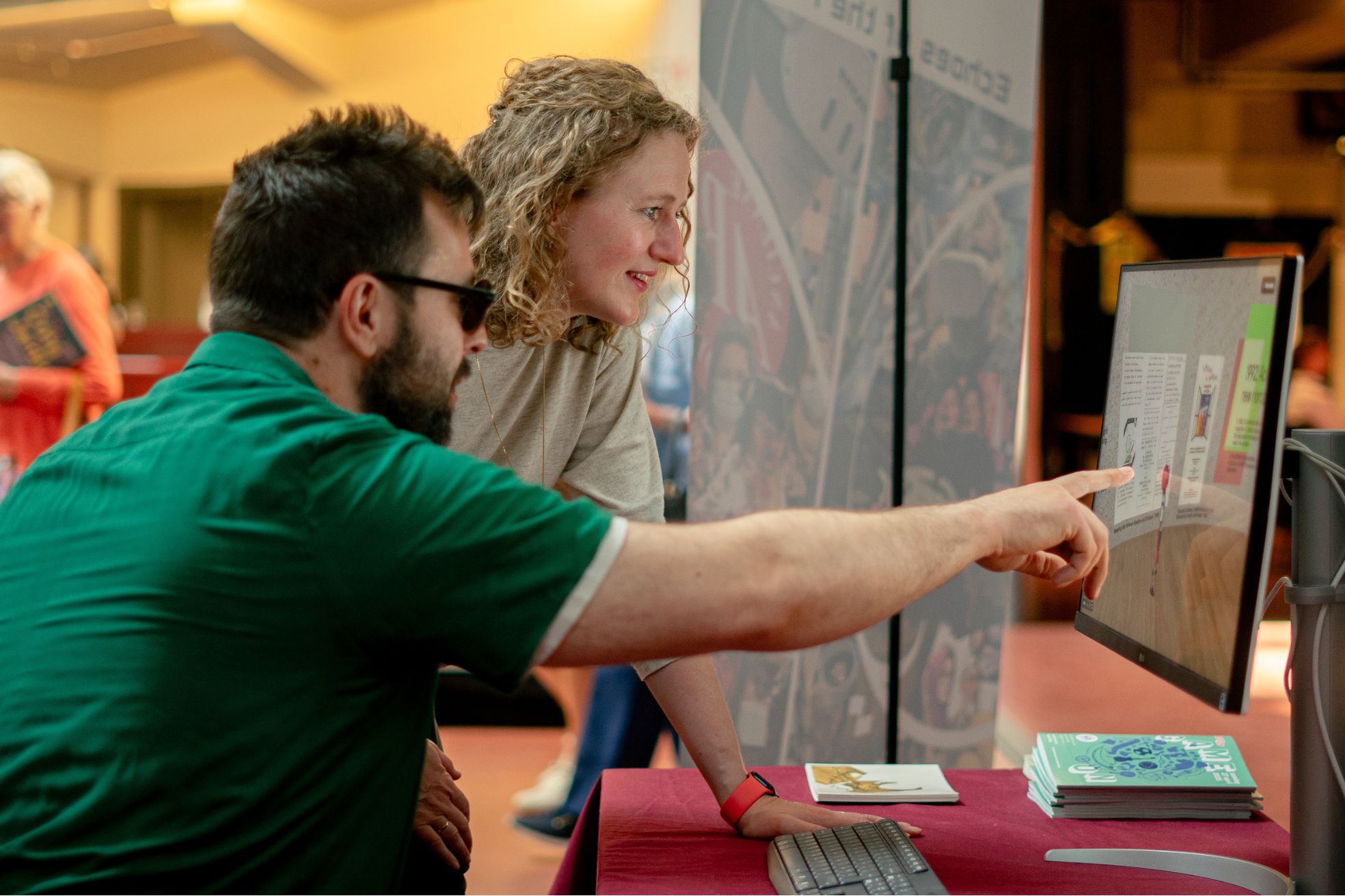 Digidaar is van meet af aan opgezet als een participatief traject. In het eerste projectjaar brachten we een diverse en betrokken gemeenschap samen rond het erfgoed van Voem. Via gesprekken, creatieve sessies en bijeenkomsten werkten we samen met vrijwilligers, artiesten en partnerorganisaties van Voem. Hun input was cruciaal bij het bepalen van welk erfgoed we wilden tonen en hoe we dat digitaal vorm konden geven.