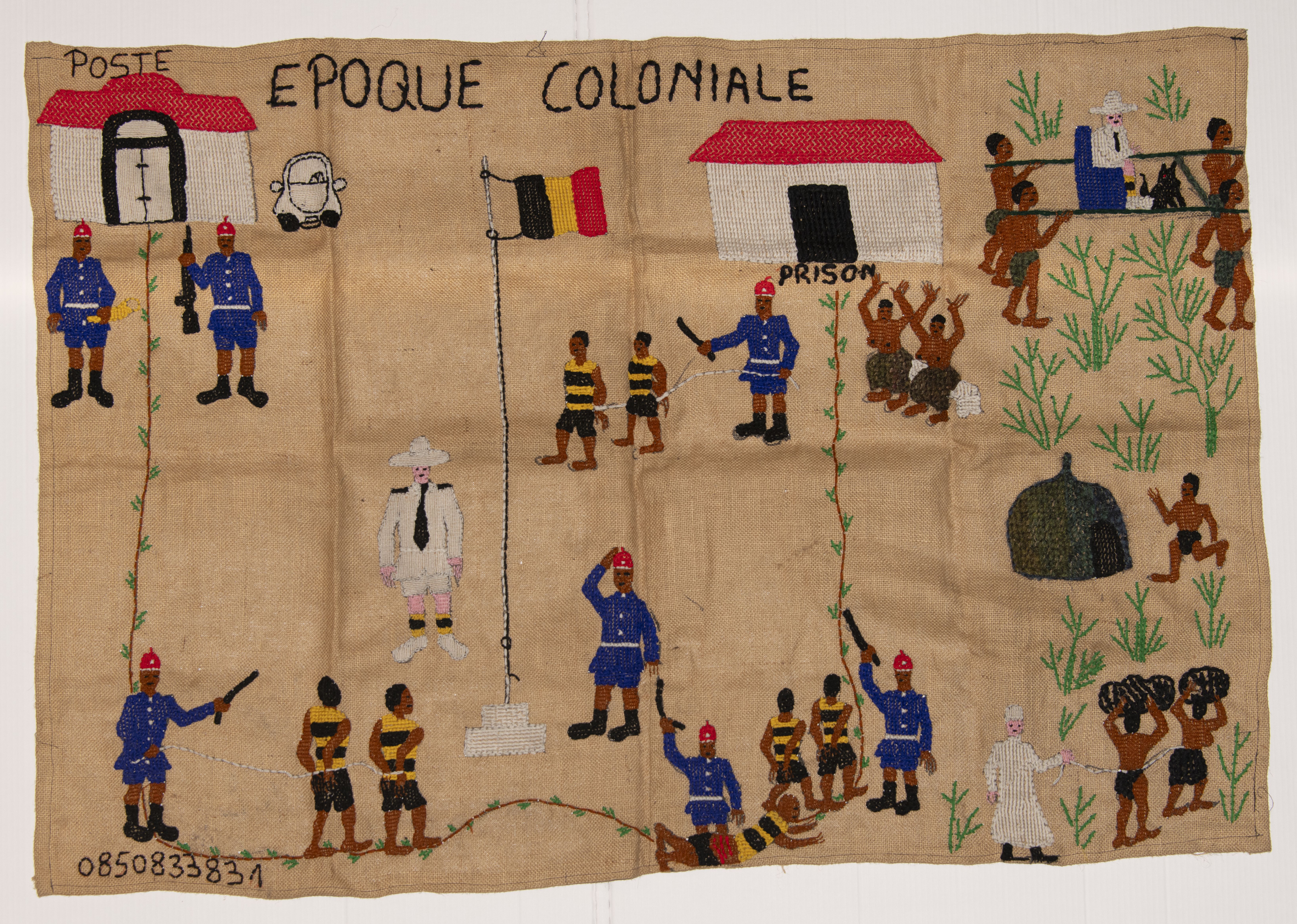De 80-jarige kunstenares Lucie Kamuswekera woont en werkt in Goma, in het oosten van Congo. Al sinds haar jeugd borduurt ze, een vaardigheid die ze leerde van Italiaanse missiezusters tijdens de koloniale periode. Op ruwe jutezakken verbeeldt ze de geschiedenis van haar land – van kolonisatie tot het heden – met indrukwekkende taferelen van geweld, onrecht en verzet. Haar werk is zowel kunstzinnig als historisch: een tastbaar geheugen van Congo’s pijnlijke en complexe verleden.