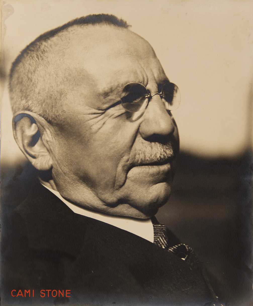 In 1929-1930 maken de Stones een groot aantal portretten van politici, in opdracht van het Belgische parlement. Wanneer ze een paar jaar later in België aankomen, gaan ze door met hun politieke portretten. Zo fotograferen ze ook de leden van de Belgische Werkliedenpartij. Deze foto's hebben vaak identieke kenmerken: een kadrering op het gezicht en het bovenlichaam die één schouder onthult, een licht kikvorsperspectief, een blik die zelden naar de lens is gericht en een neutrale achtergrond. Sommige foto's zijn echter uitzonderingen, zoals het portret van August Balthazar, lid van de Belgische Werkliedenpartij, met een werkelijk verrassende kadrering met een close-up van het gezicht.
