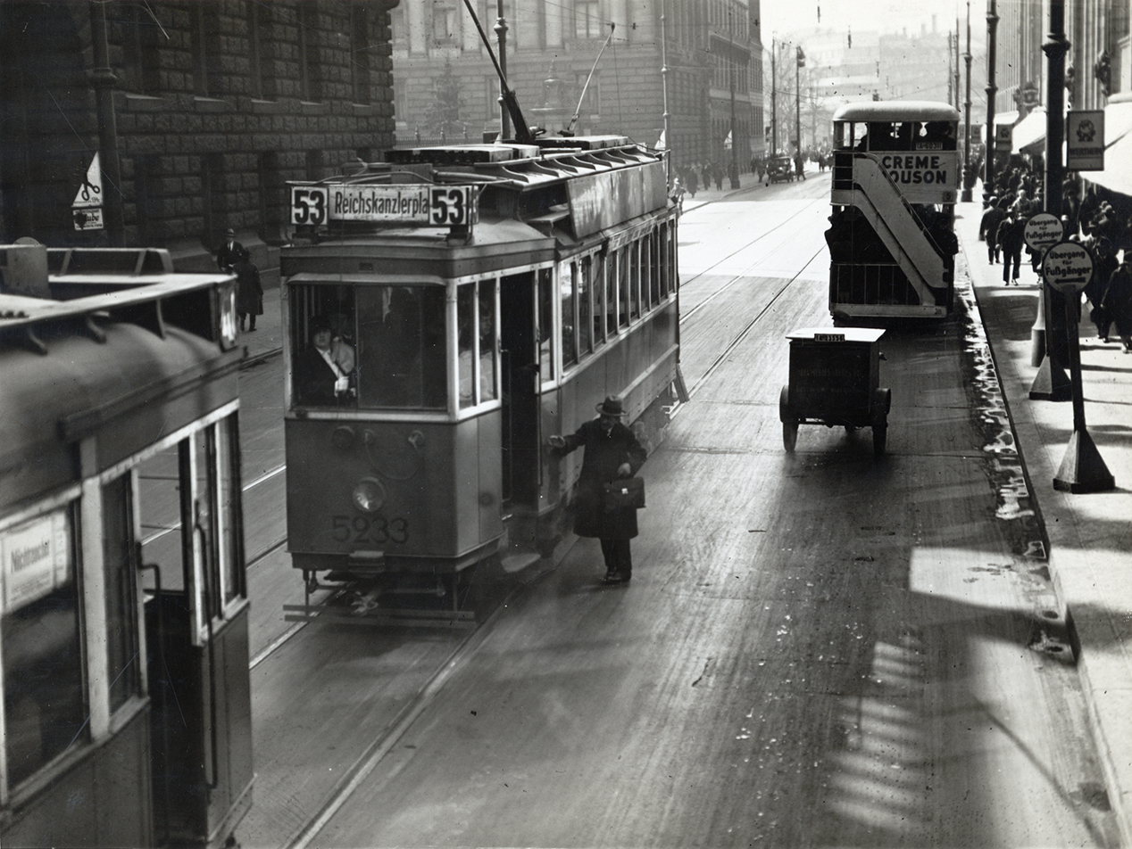 Fotografie is een krachtig communicatiemiddel. Het zorgt ervoor dat je je een beeld kunt vormen bij een stad of streek. In de jaren 1920 ontstond een type werk dat gewijd was aan gebieden (landen, regio's of steden), in een combinatie van tekst en foto's. Het boek Berlin in Bildern van Adolf Behne en Sasha Stone is daar een mooi voorbeeld van. De foto's in het boek laten het oude en nieuwe Berlijn in gelijke mate zien, wat in 1929 zeker geen architecturale realiteit was. Sasha gebruikt zowel klassieke foto's als beelden die zijn gemaakt volgens de regels van de Nieuwe Fotografie. Zijn foto's van Berlijn – sommige gepubliceerd in het boek Berlin in Bildern en andere niet – laten soms een verlangen zien, beïnvloed door de politiek van de Weimar Republiek (het Duitse politieke regime van die tijd), om Berlijn te laten zien als een moderne metropool zoals Parijs of, beter nog, New York. De nadruk ligt op de verticaliteit van de gebouwen door het gebruik van het kikvorsperspectief, op het 'stadsverkeer' dat in die tijd werd gezien als een teken van stedelijke moderniteit, op elektriciteit met foto's van de elektriciteitscentrale Klingenberg en op de aanleg van de metro, een symbool van vooruitgang. Een foto zoals die van de bouwplaats van de metro op de Alexanderplatz is hier een voorwendsel om moderniteit op te roepen en tegelijkertijd de stedelijke transformatie te documenteren.
